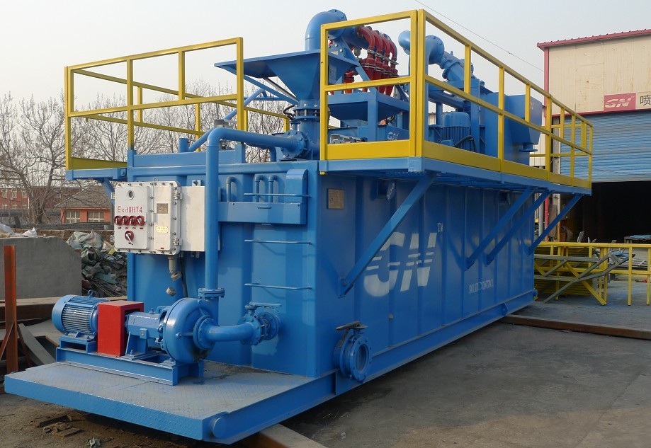 ?印度尼西亞客戶所要處理的流量是60m3/h,定向穿越系統(tǒng)設(shè)備主要包括 1,ZS63×125-3振動篩(其中加上了兩個10〃 除砂旋流器) 2,CNQ60×160/4-8除泥器 3,射流混漿裝置(混漿漏斗和砂泵) 4, 兩個配套砂泵提供動力裝置 5,泥漿罐及其附件